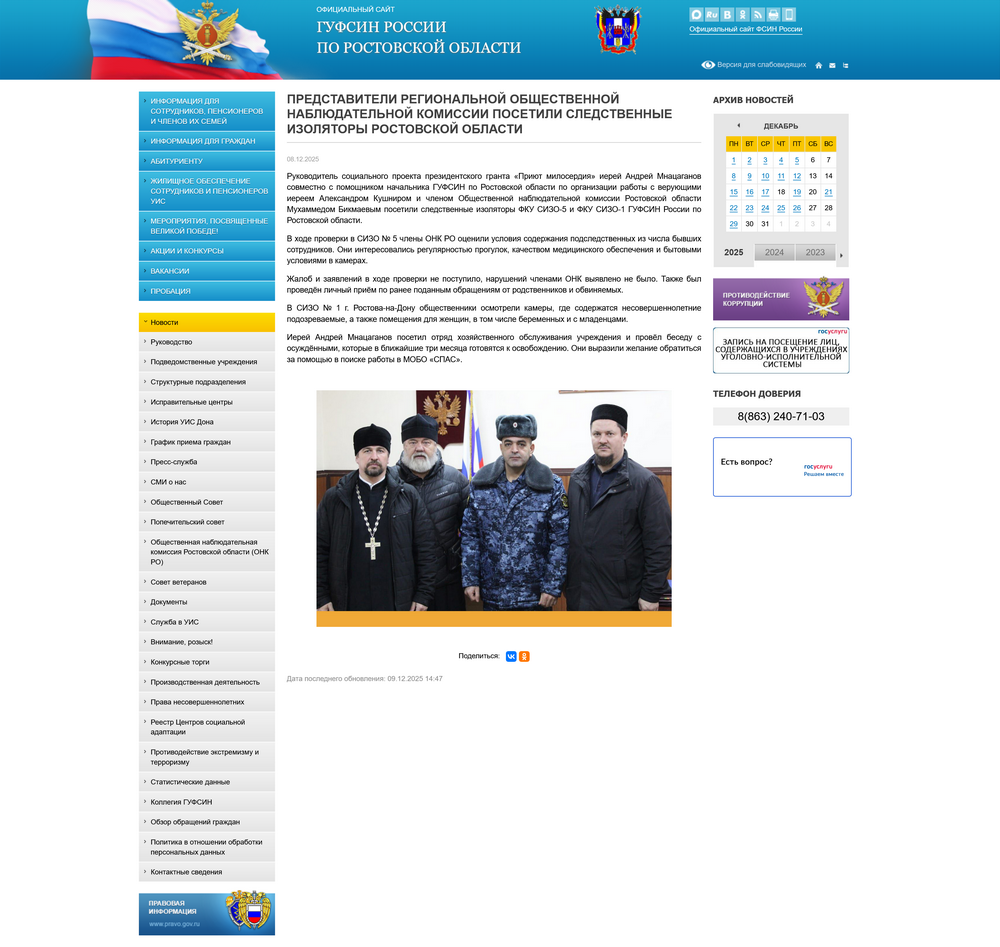 Волонтеры регулярно освящали мероприятие проекта на сайте МОБО “СПАС”, сайте Ростовской на Дону епархии, ГУФСИН РО и социальных сетях.